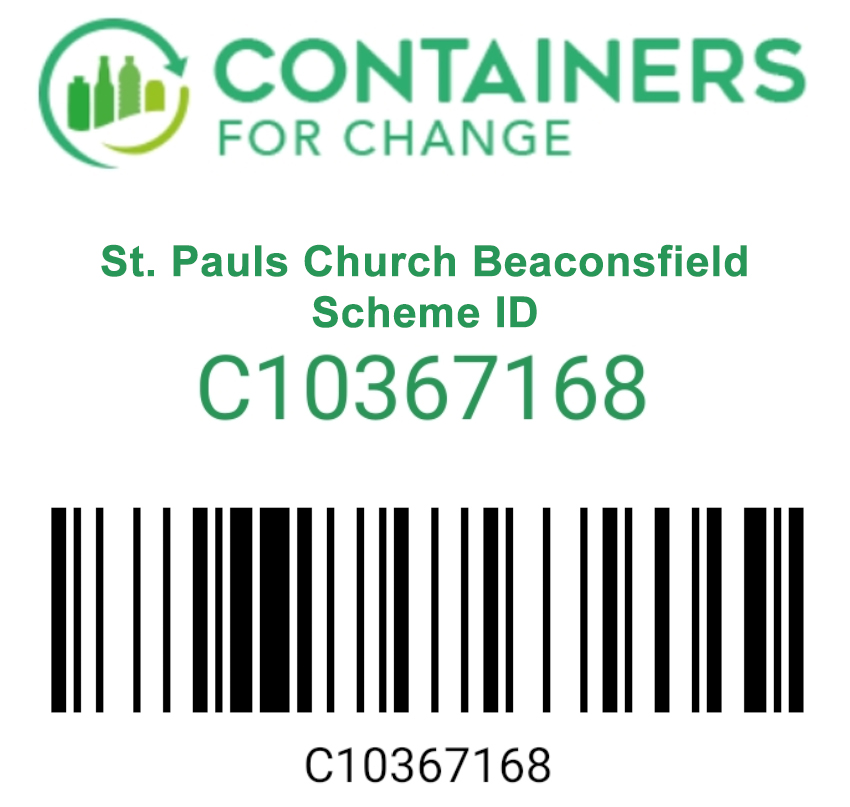St Paul’s Beaconsfield has signed up to the WA Containers for Change scheme and is actively seeking donors of their change through the scheme. Please use the CfC scheme ID in this image to donate to St Paul’s Beaconsfield.
