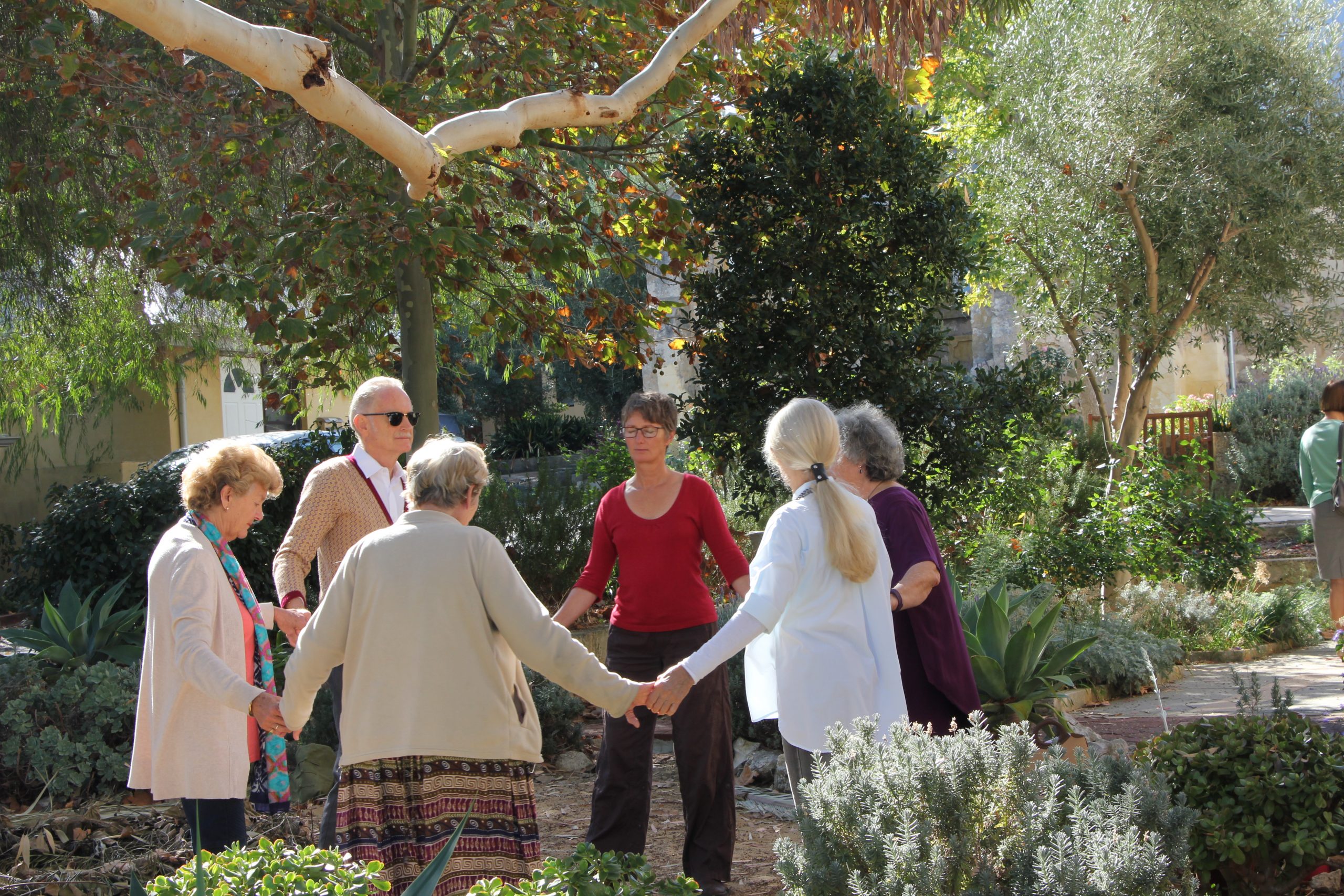 After the service, each Sunday, some join hands and form a circle for “The Elm Dance”. They gather in the circle dance area outside the church before going up to coffee in the hall; and all are invited to share in this simple movement.